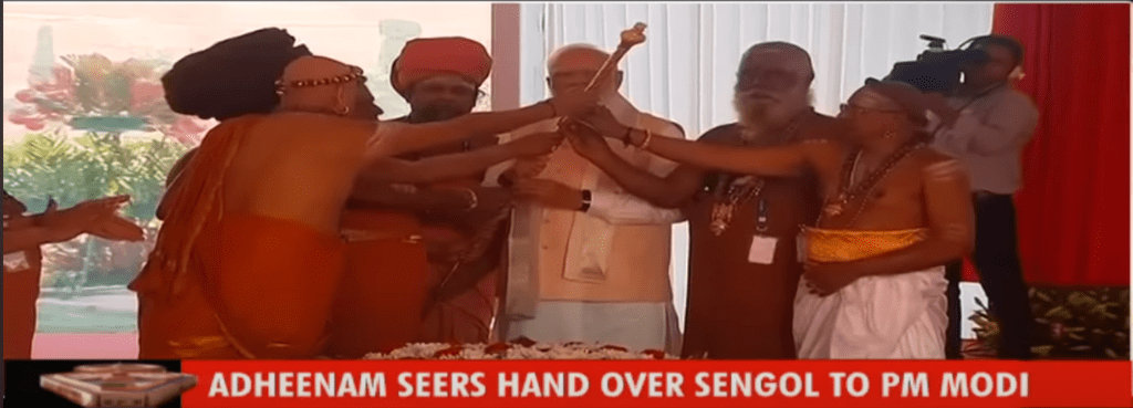 I usually wind down after a busy day listening to the ruckus of Indian politics, usually while multi tasking. Indian TV debates are almost like being in a busy Indian railway stations. It is a cacophony of a few hundred people talking all at once and somehow managing to yell loud enough to be heard by the other amidst all the din. In one such debate I heard this word Sengol. I’m a tamilian by birth and origin but can hardly boast of my fluency, so I have always known of sengal, which means brick, but never Sengol. So i was perplexed to hear this new word for the first time and I had to research it.