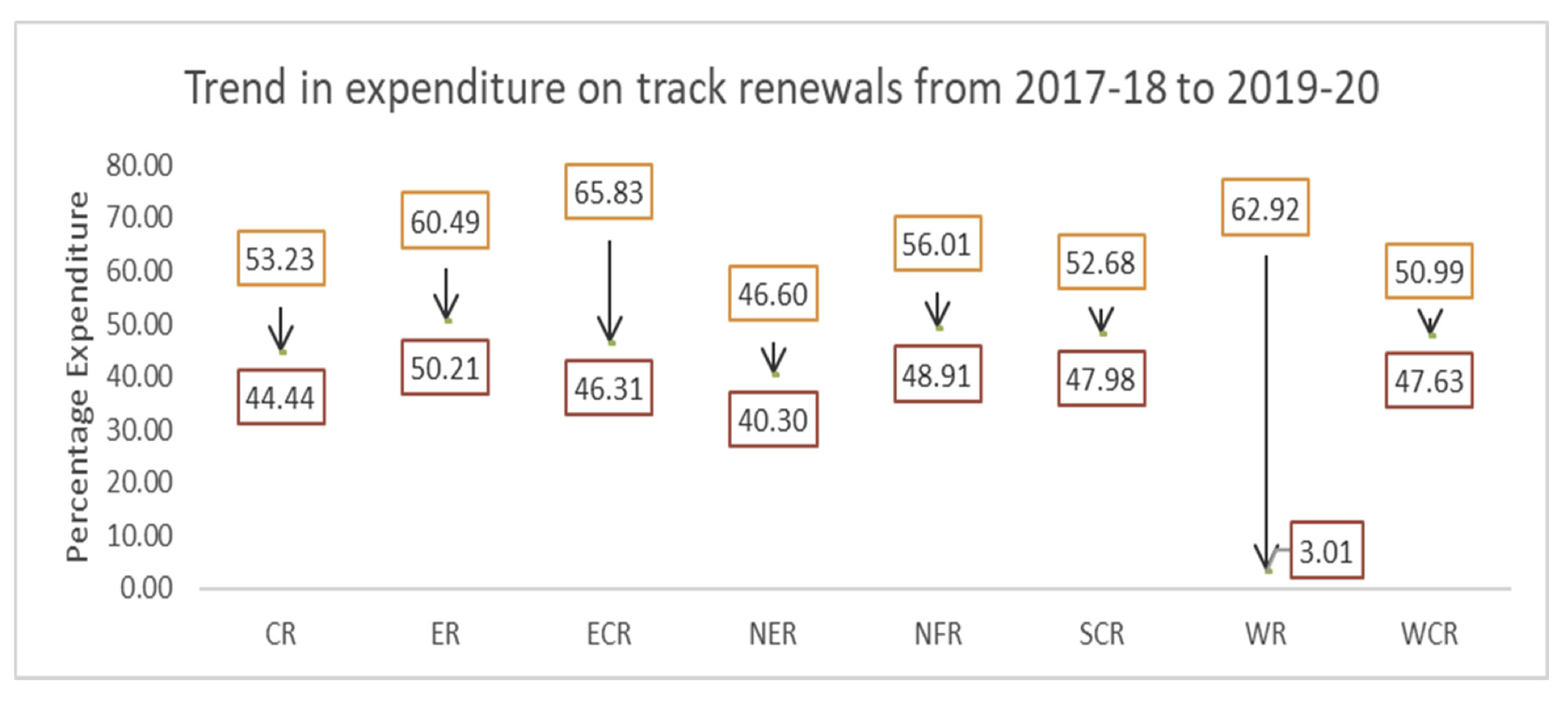 - It was identified, there was a 30-100% shortfall in Monitoring by Track Recording Cars carried out to assess the structural and geometrical health of the tracks.