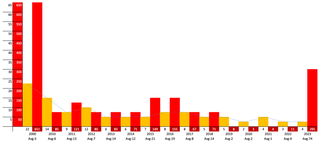 Last 10 years accounted for 913 deaths on account of railway accidents, a 40% increase since 2000-2010. The Orissa disaster alone accounted for 32% of the deaths in the last 10 years, which showed consistent improvement since 2015-16 which was one of its worst. If not for the Orissa disaster the accident fatality number would have improved by 5% over previous years. So is this just a one off, or an act of god?